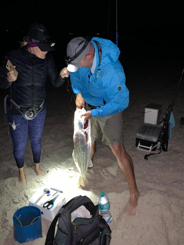 Next thing my buddy utters the most unexpected, KOBBIE, as he beached a nice fat looking specimen. Now, there was no talk of a contest, there never is, but the competition is always on. A few minutes into his next cast he shouted to his girlfriend to come and reel. Reel she did and another sizer was flapping on the side a couple of minutes later. And just like that it was two zip!