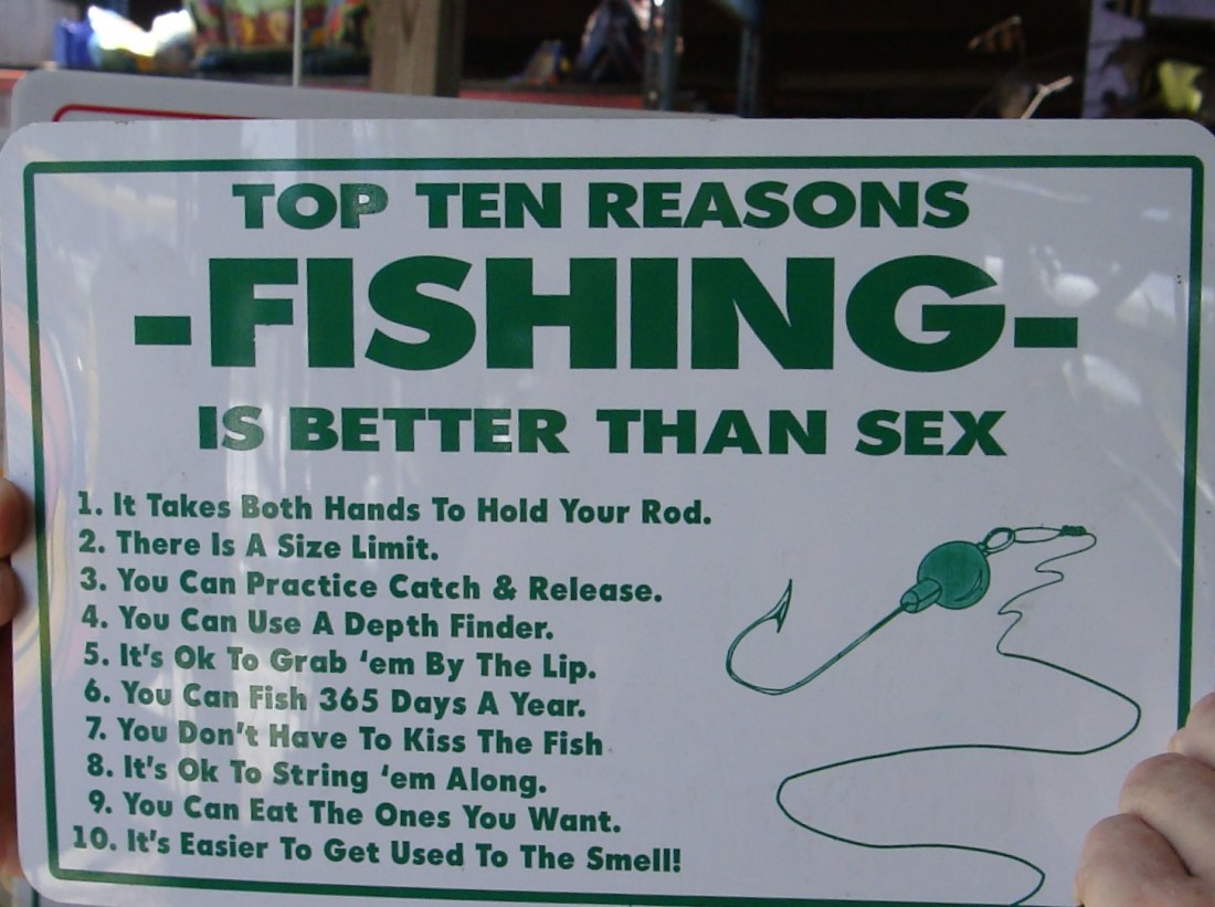 Visvang is versteekseker beter as seks! Hier volg 31 redes hoekom... Jy hoef nooit jou oë toe te maak om jouself te verbeel jy vang saam met iemand anders vis nie. Die internet geskiedenis hoef nooit afgevee te word nadat jy 2 minute op ‘n visvang webtuiste was nie. Dis heel aanvaarbaar om van tyd … Continue reading Visvang is beter as seks